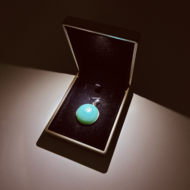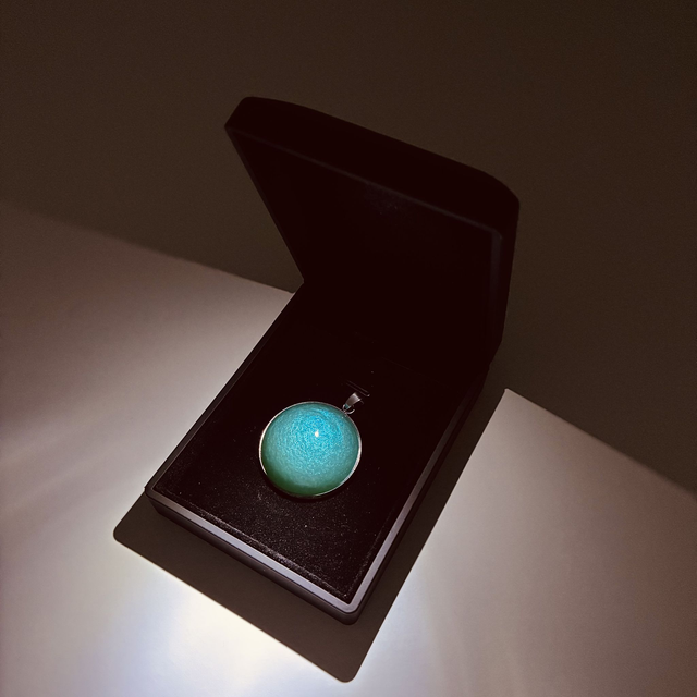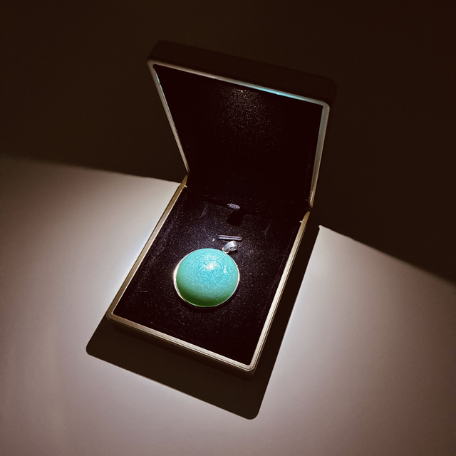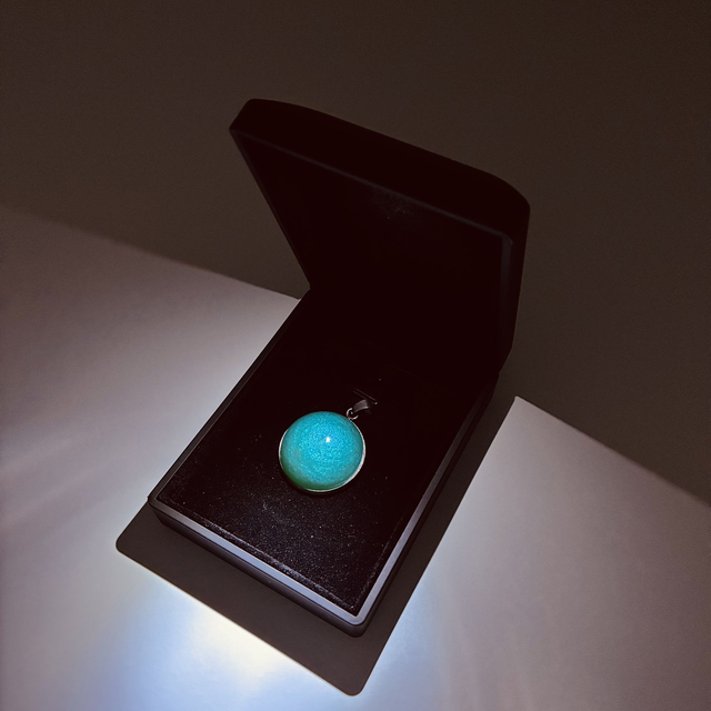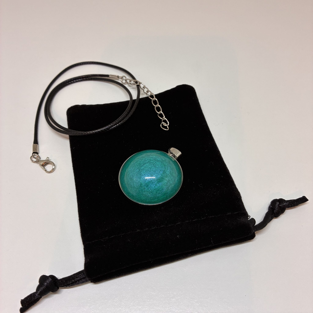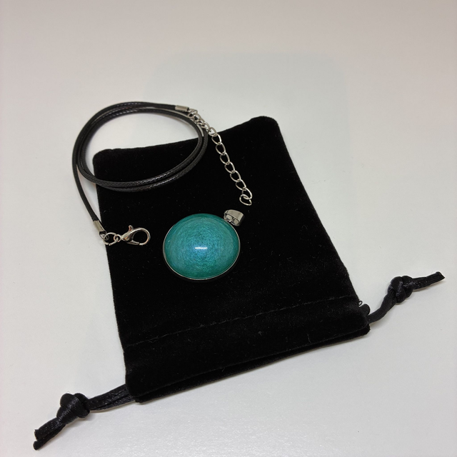 Dichte rondvormige ashanger met zilverkleurig frame, inclusief verstelbare ketting van gevlochten leer in een zwart fluwelen zakje. De as zal worden fijngemalen tot poeder die vervolgens zal worden vermengd met het mica poeder die de kunsthars kleur geeft. Kies voor het as-verzendpakket om de as veilig aan te leveren. Het sieraad zal binnen 5 werkdagen na het ontvangen van de as worden verzonden.
