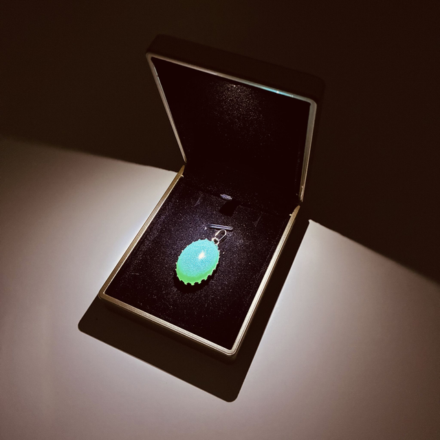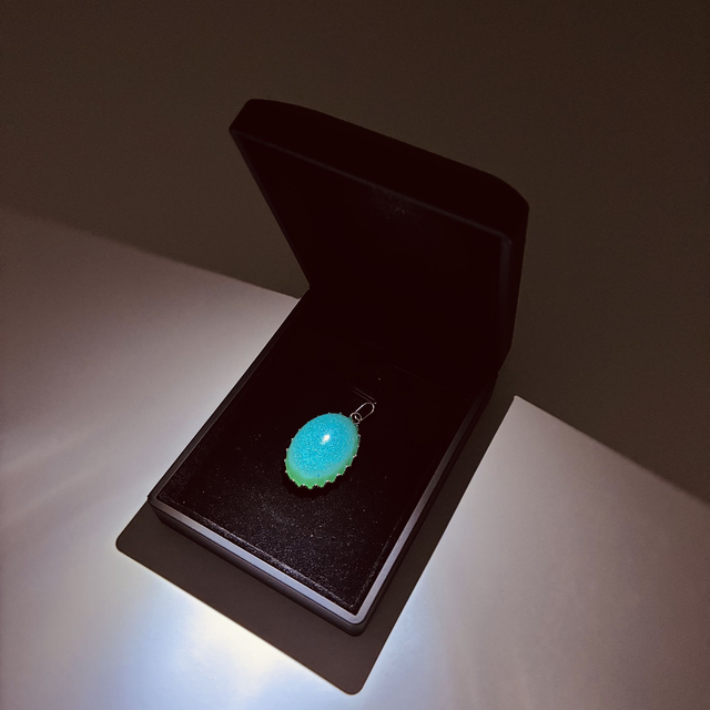 Ovaalvormige ashanger met tandjes en zilverkleurig frame, inclusief verstelbare ketting van gevlochten leer in een zwart fluwelen zakje. De as zal worden fijngemalen tot poeder die vervolgens zal worden vermengd met het mica poeder die de kunsthars kleur zal geven. Kies voor het as-verzendpakket om de as veilig aan te leveren. Het sieraad zal binnen 5 werkdagen na het ontvangen van de as worden verzonden.